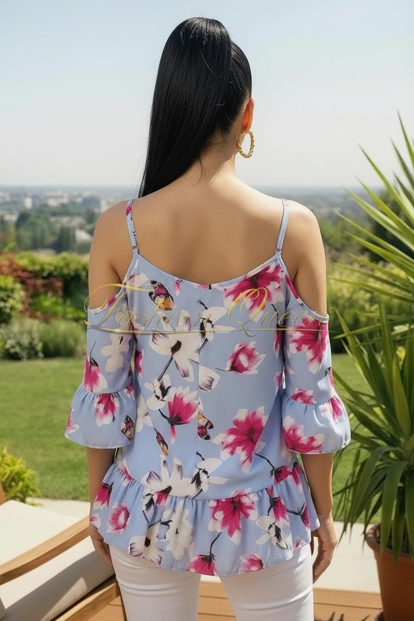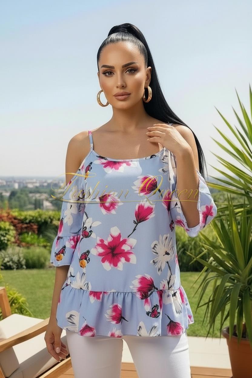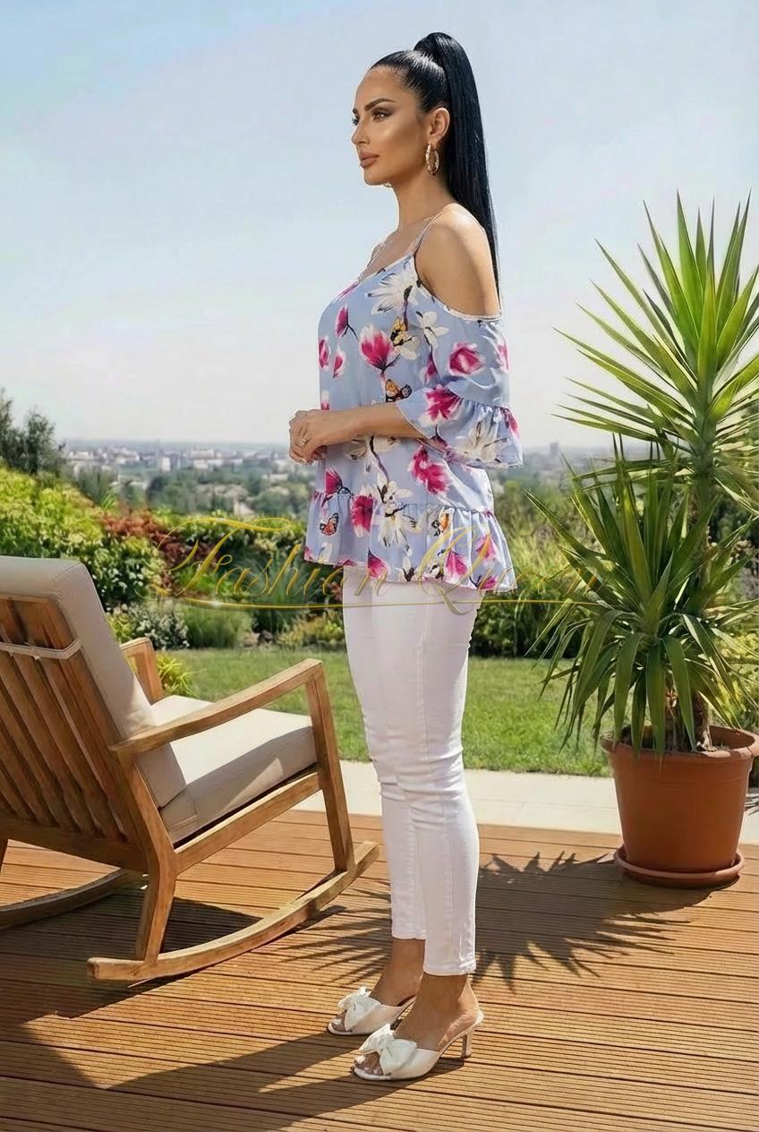 Krásny kvetovaný top s odhalenými ramenami môžete kombinovať k elegantným nohaviciam, džínam aj šortkám. Je to univerzálny kúsok, ktorý využijete najmä počas teplejších dní. Farby oživia váš šatník.