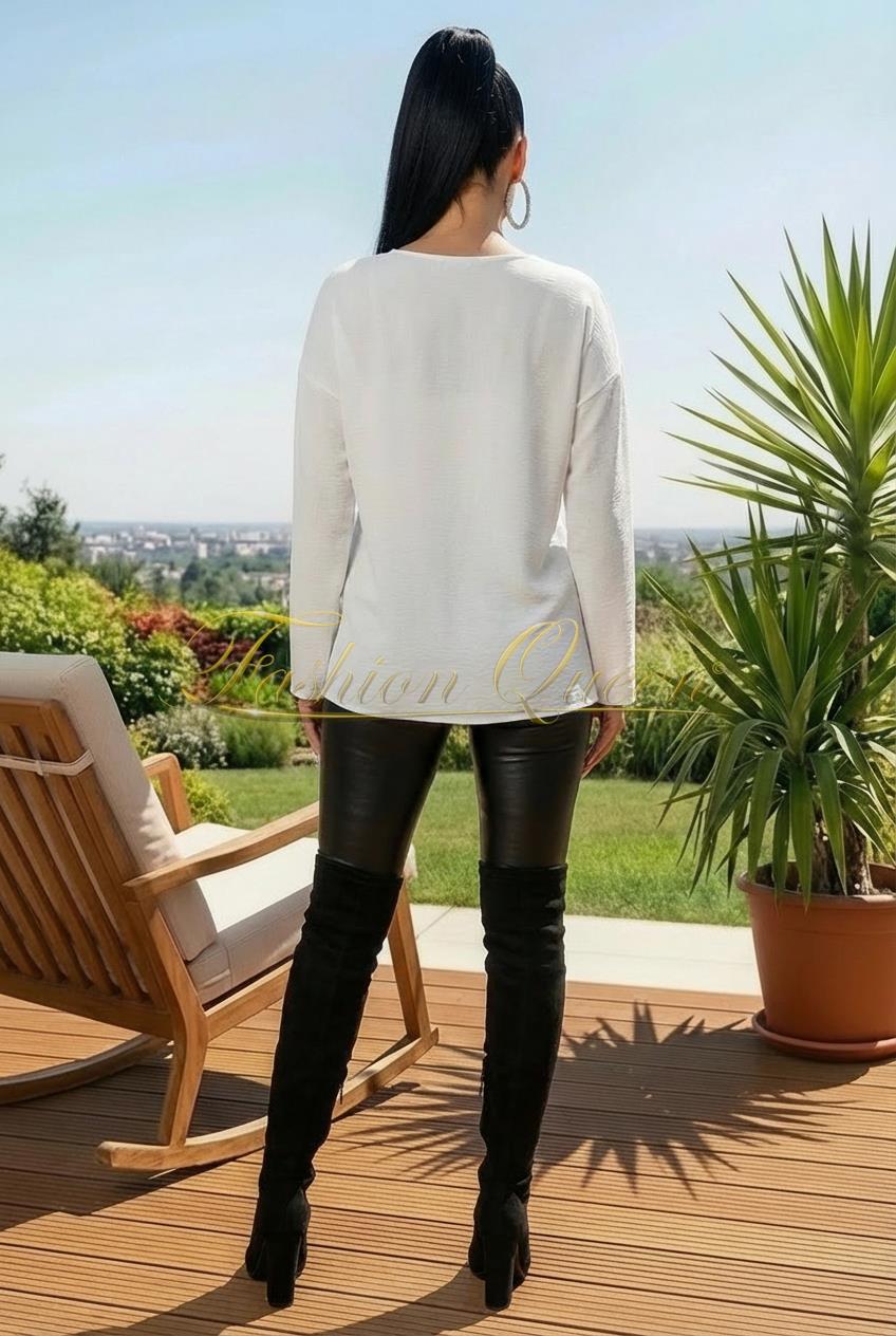 Jednoduchá blúzka voľného strihu je pohodlná a ľahko sa kombinuje. Môžeš ju zakomponovať do viacerých outfitov, stačí vhodne skombinovať.