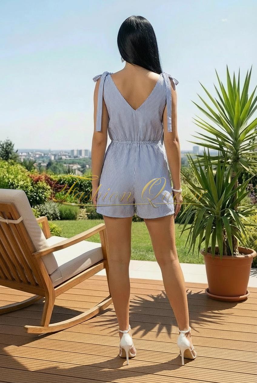 Krátky pásikavý overal je nielen in, ale aj nesmierne sexi. Stačí ak si k nemu obujete sandálky alebo tenisky a môžete vyraziť do ulíc.