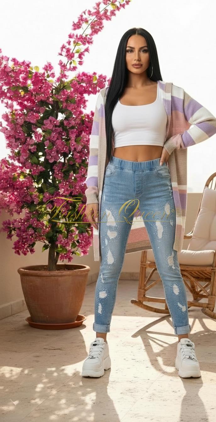 Pohodlné a štýlové džíny s kamienkami, ktoré ľahko zladíte k čomukoľvek.
