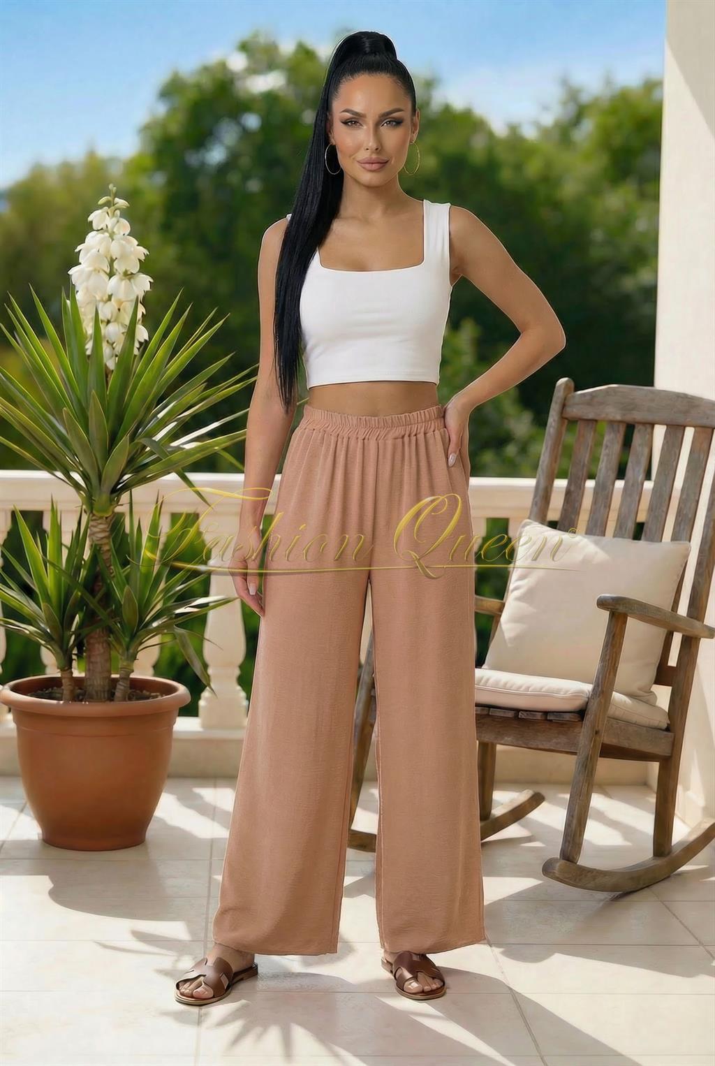 Široké nohavice sú jedinečný kúsok, ktorý by nemal chýbať v žiadnom šatníku. Sú vyrobené z ľahkého vzdušného materiálu a pekne sedia na postave.