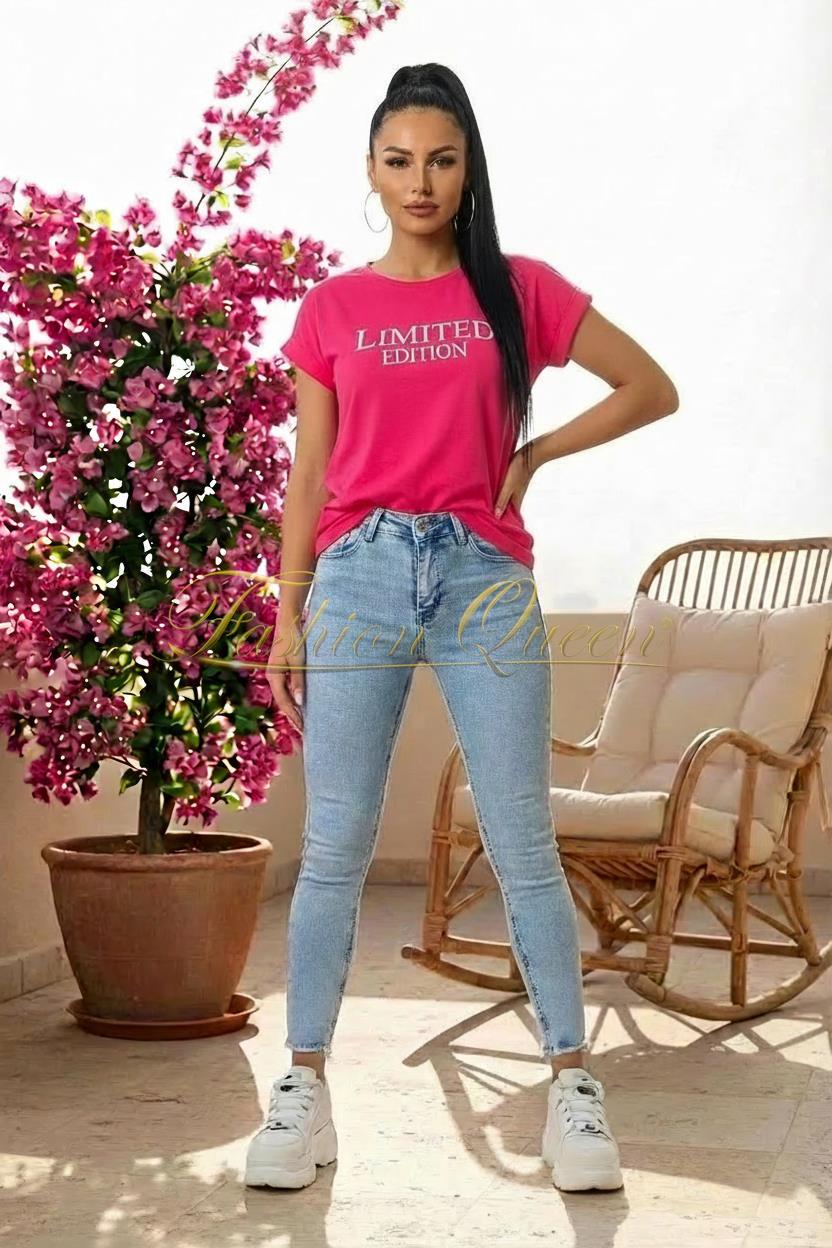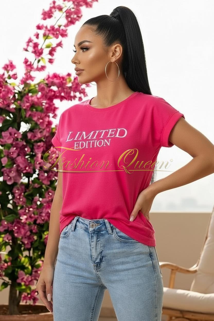 Oživte svoj každodenný outfit týmt tričkom s nápisom „LIMITED EDITION“, ktoré vďaka svojmu pohodlnému strihu prináša dokonalú rovnováhu medzi ležérnosťou a ženským štýlom.
